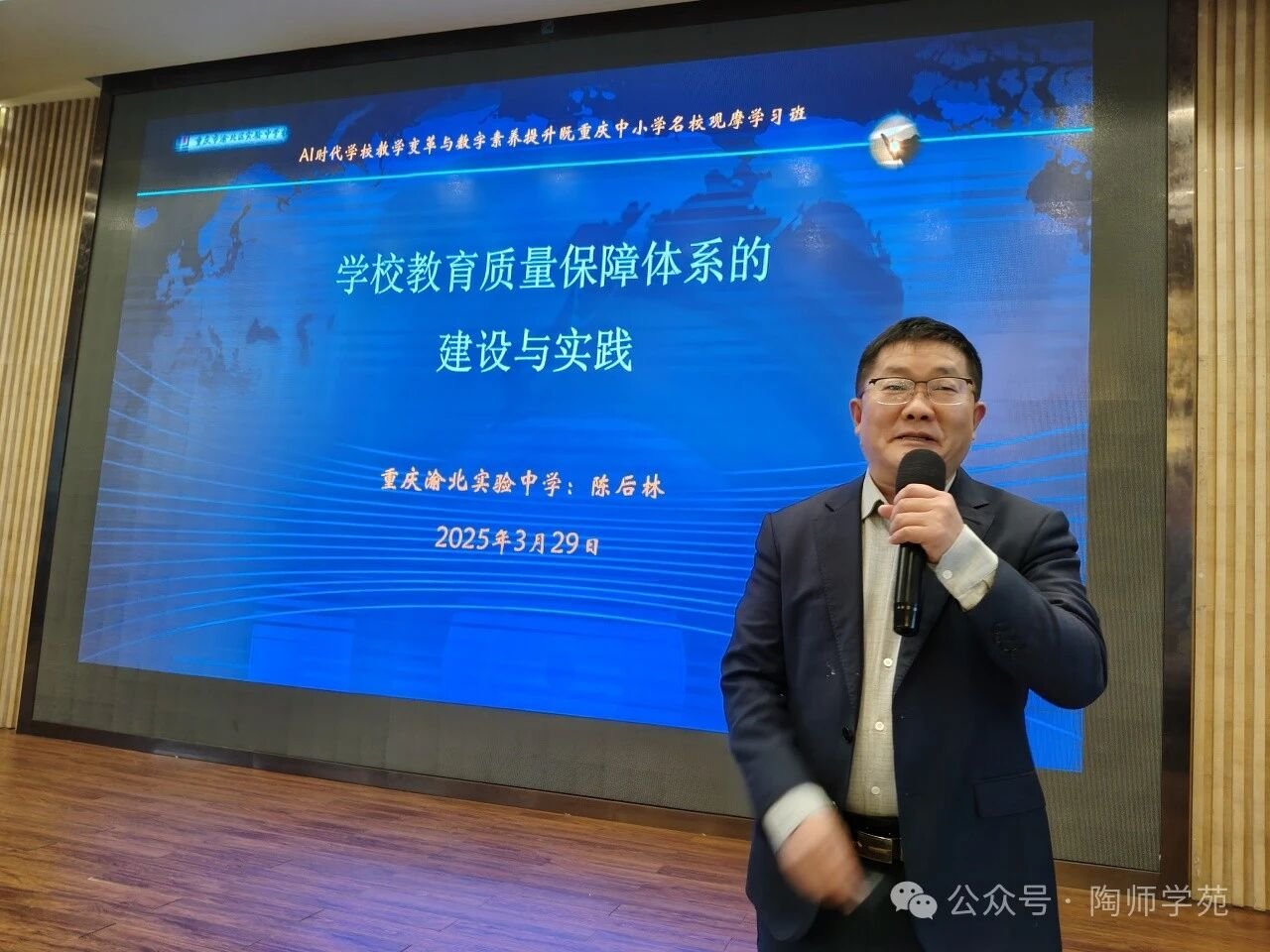 随后,重庆市渝北区实验中学陈后林校长为各位老师带来了他的讲座——《新时代学校教育质量保障体系的建设与实践》。在场教师无不受益匪浅,纷纷与陈校长展开交流探讨。